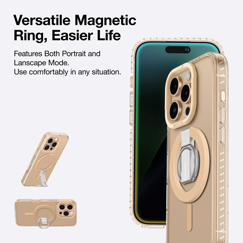 Enhanced with a sturdy, built-in ring for a secure grip and versatile kickstand functionality, offering convenient hands-free viewing.