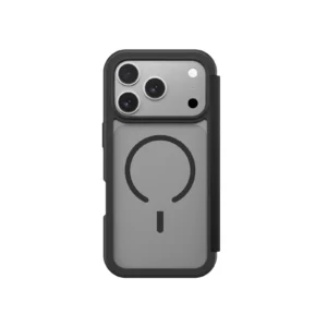 Glamour Folio protects the screen with a magnetic front flap that blocks scratches, dust, and accidental contact. It includes two built-in card slots for carrying daily essentials without extra bulk. The smooth vegan leather finish supports MagSafe charging and keeps the form slim and structured for everyday use.
