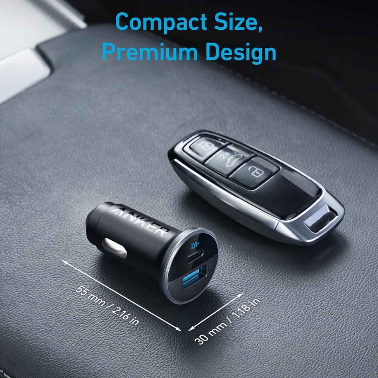Anker 323 Car Charger / 52.5W Power / Charges 2 Devices / Supports Laptop Charging / Black