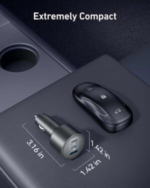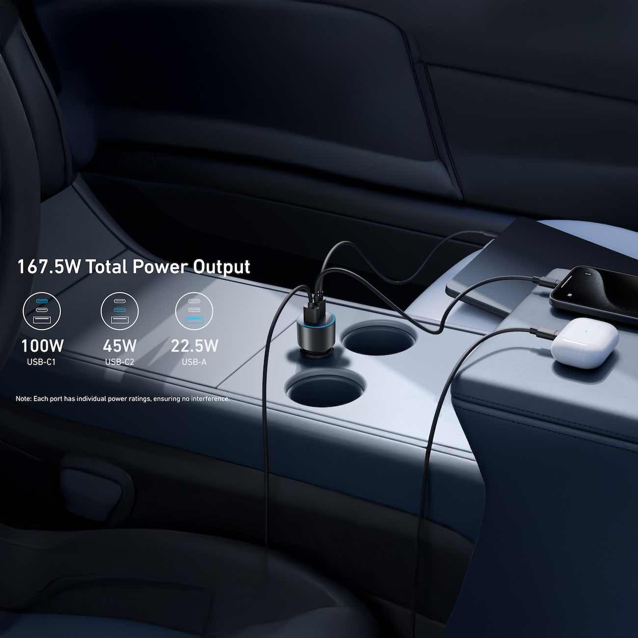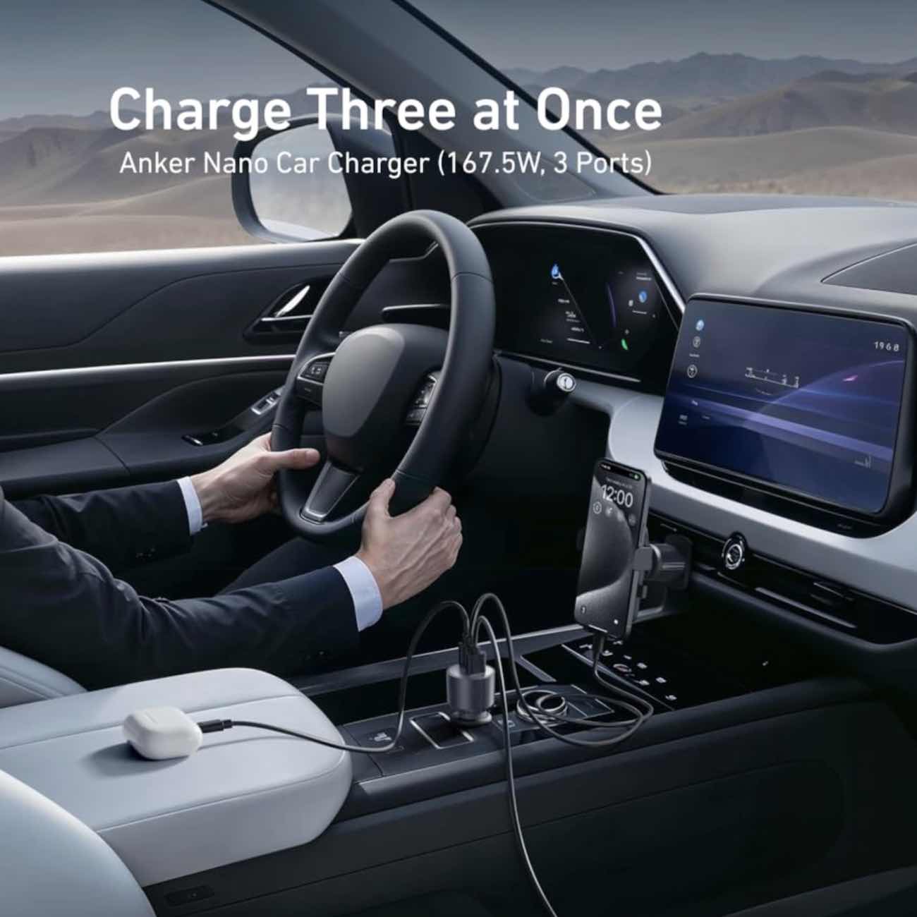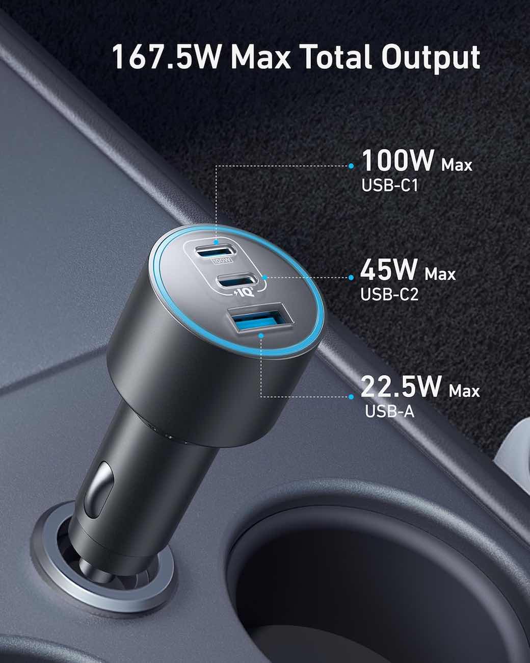 Anker Nano Car Charger / 167.5W Power / 2 Type-C & 1 USB Ports / With Type-C Cable