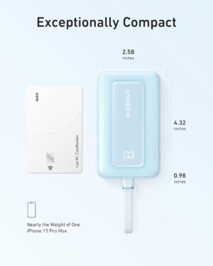 Anker Zolo 10,000mAh Power Bank / Type-C & USB Ports / Built-in Type-C Cable / 30W Power / Blue