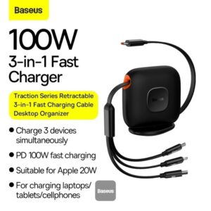 Baseus 3 in 1 Type-C Cable / Provides 3 Different Ports / 100W / 1.7 Meters / Black