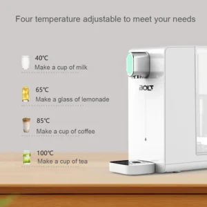 With its compact and user-friendly design, the BOLT Instant Hot Water Dispenser with Automatic Ambient Lighting is a great choice for anyone who wants a convenient and stylish way to enjoy hot beverages on demand, without the need for a kettle or stove.