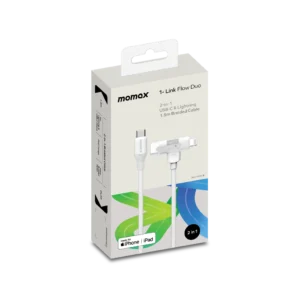 Momax Flagship Flow Series – Support iPhone or iPad fast charging. Slide to switch Lightning to USB-C cable. Designed by Momax.