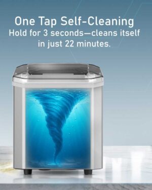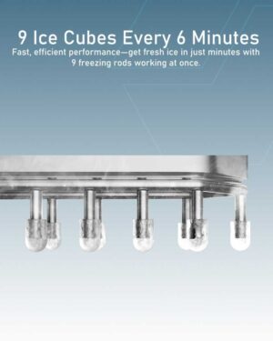 Portable Self-Cleaning with Hand Scoop and Basket, 9 Bullet Ice Cubes in 6 Mins, 12KG/24H, 2 Sizes of Ice, Ideal for Home, Kitchen, Office, Party, Bar