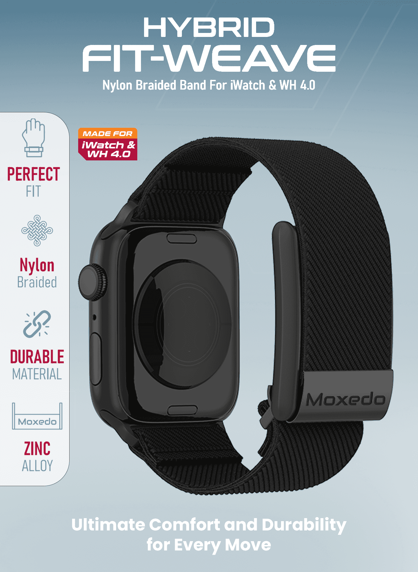 Moxedo Hybrid fit-weave Nylon Braided Band – Black